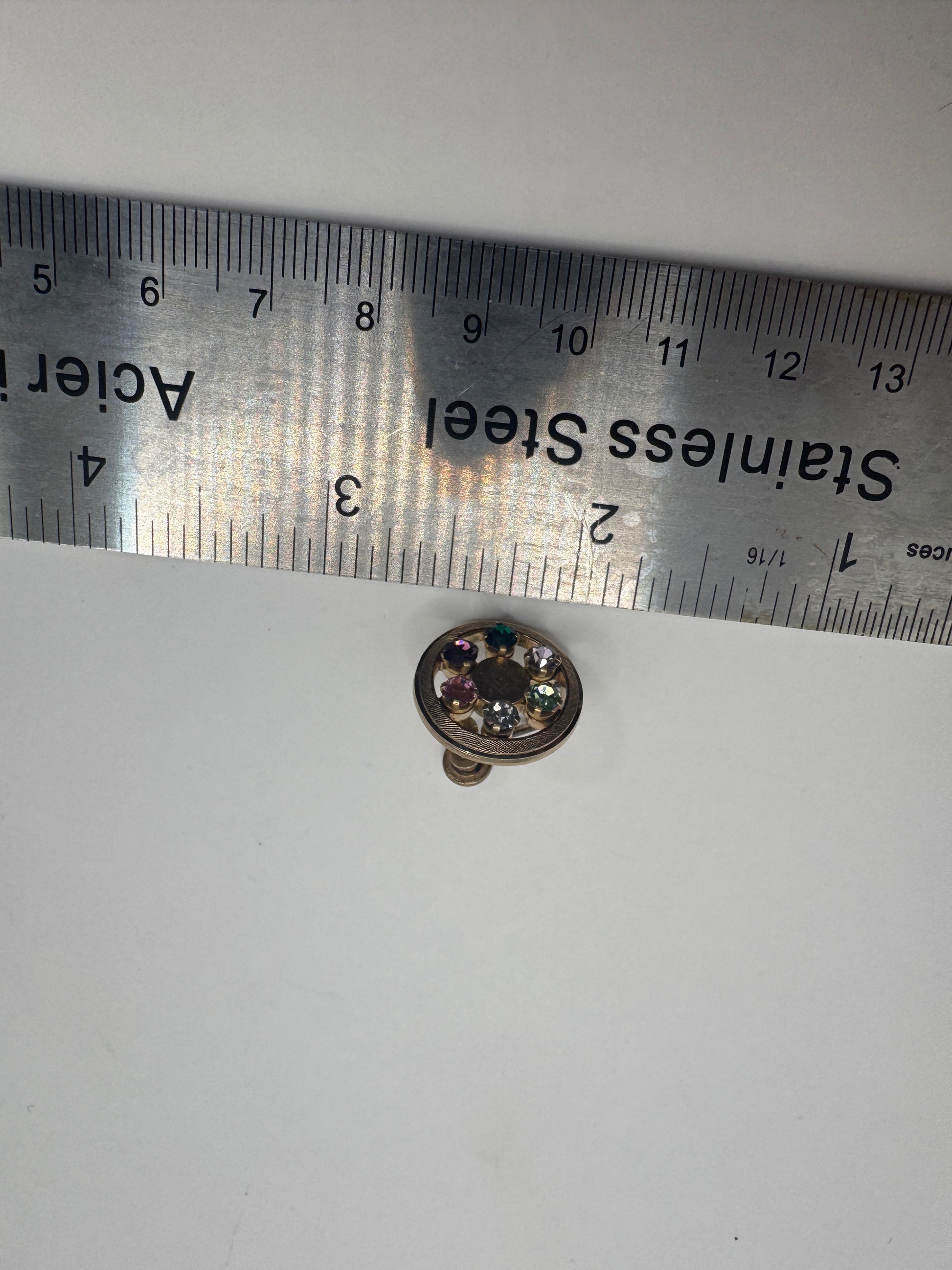 - Round design with multicolor rainbow crystals