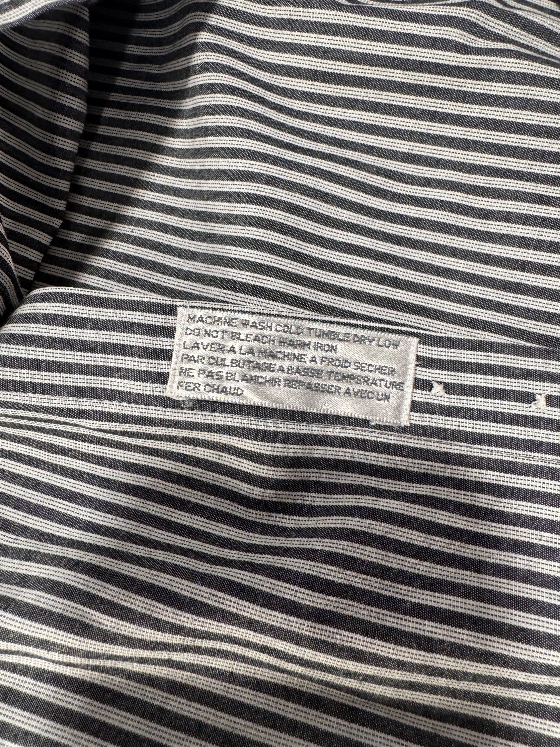 Upgrade your wardrobe with this authentic Christian Dior men’s shirt, featuring a timeless black and white vertical stripe pattern. Expertly crafted for a tailored fit, this classic button-down is made from premium cotton for comfort and sophistication. Size 34-35 (17) with measurements: length 33”, width 25”, sleeve 24”. Perfect for business, formal occasions, or anyone seeking iconic French designer style.