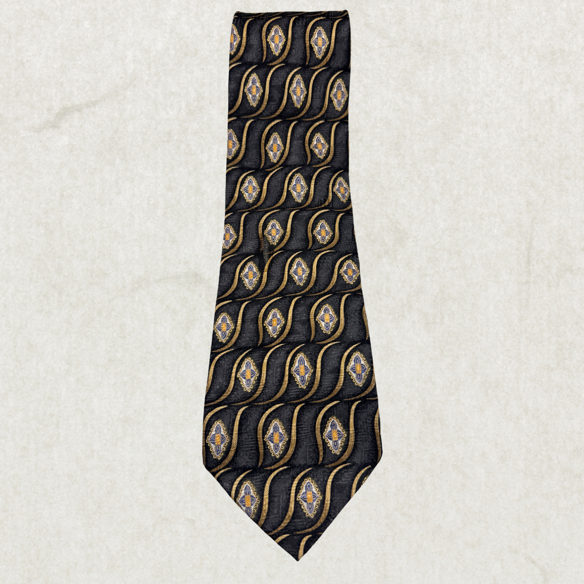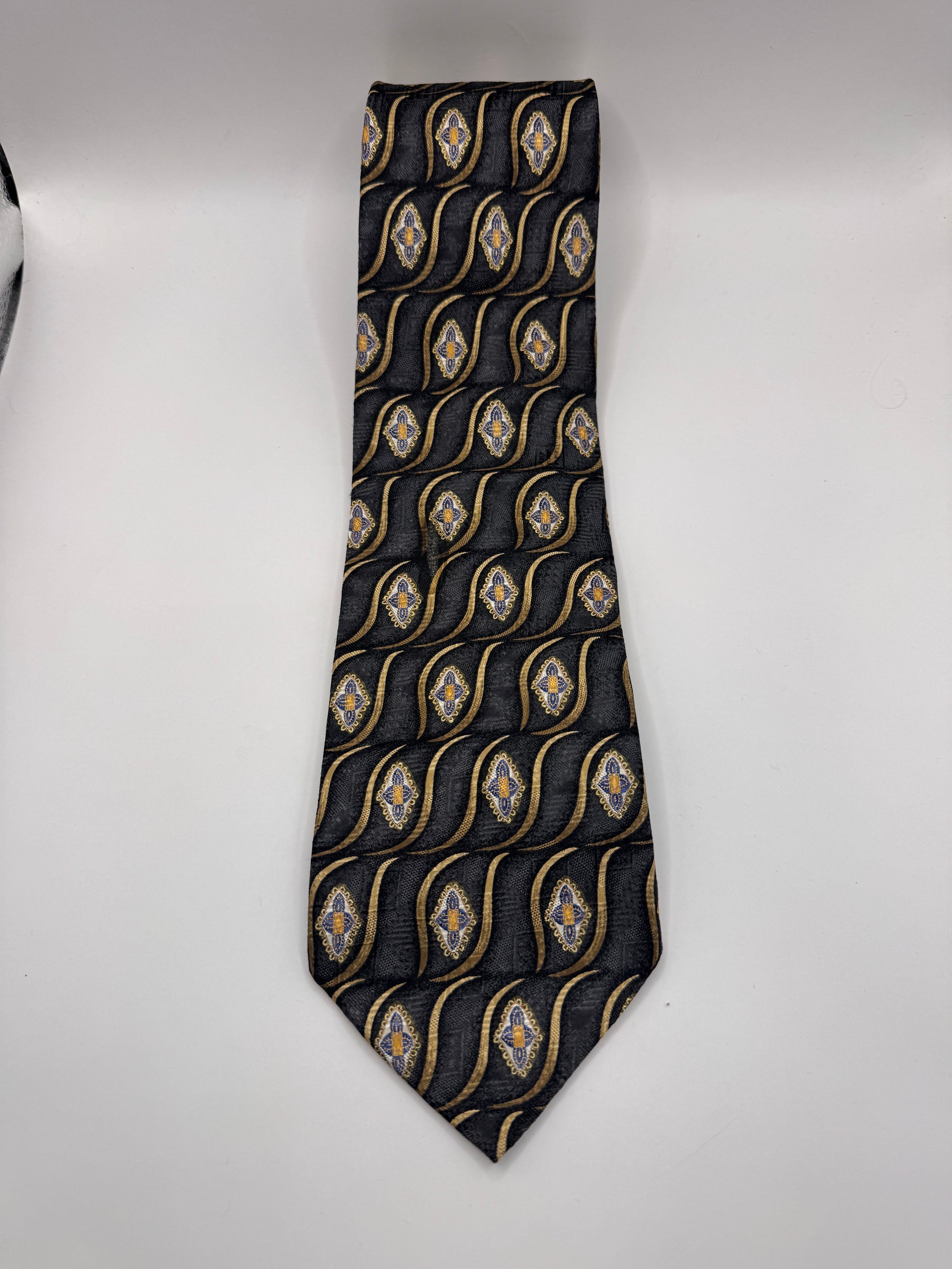 Christian Dior 100% Silk Tie – Vintage Black & Gold Pattern, 58” x 4”