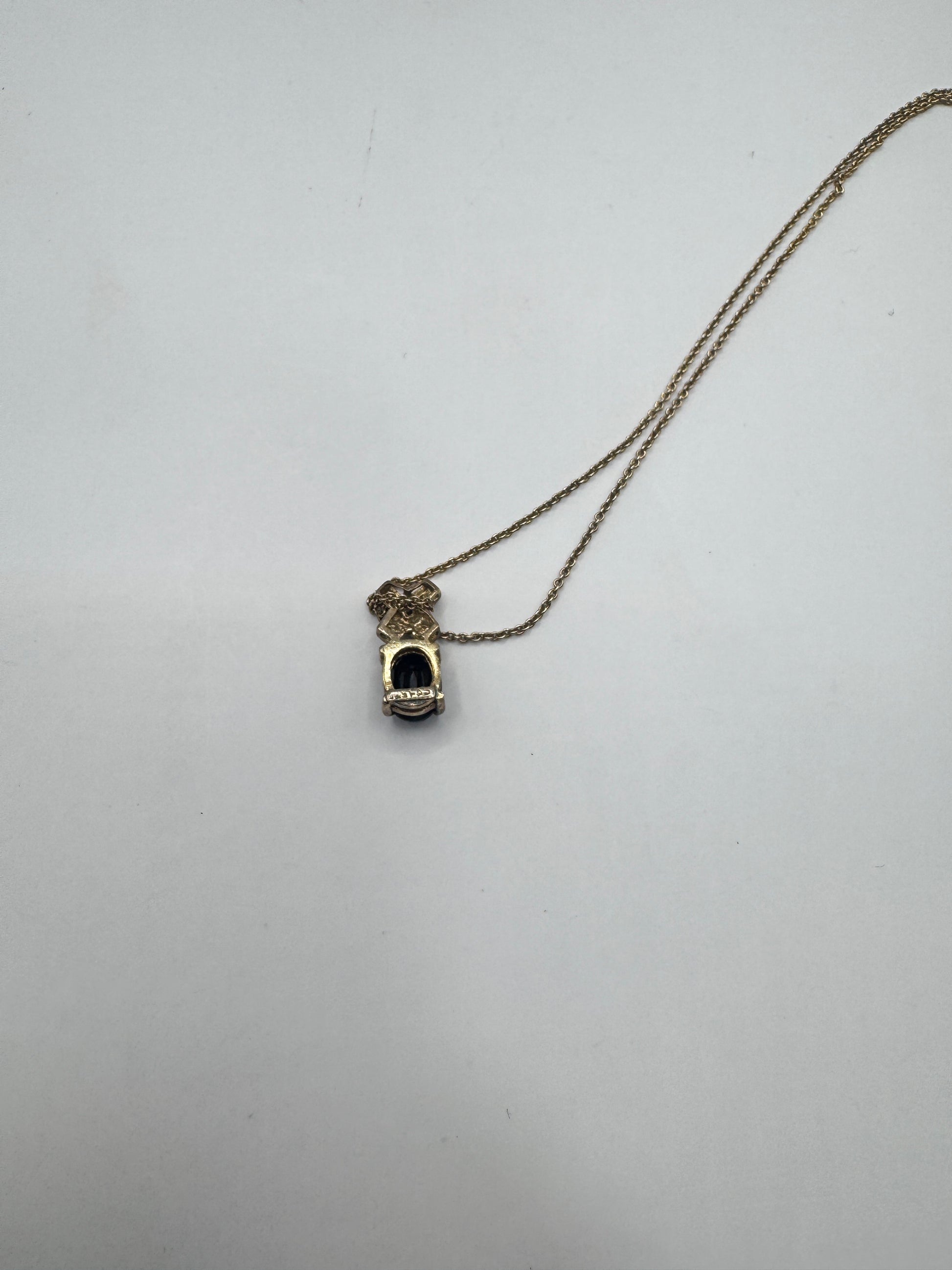 Gold-Plated Sterling Silver(925) Necklace with Black Stone Pendant
