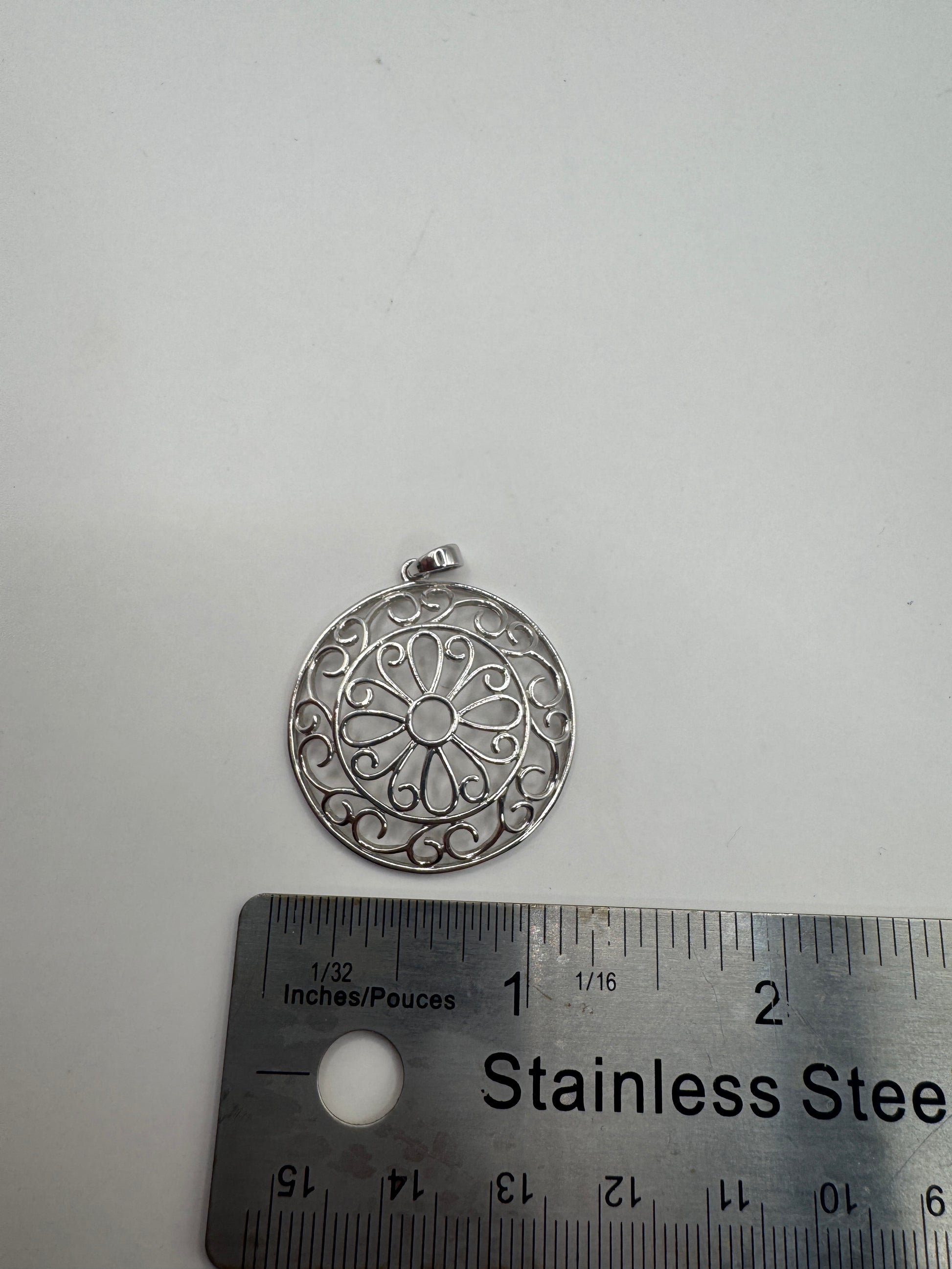 Large Vintage 925 Sterling Silver Filigree Pendant