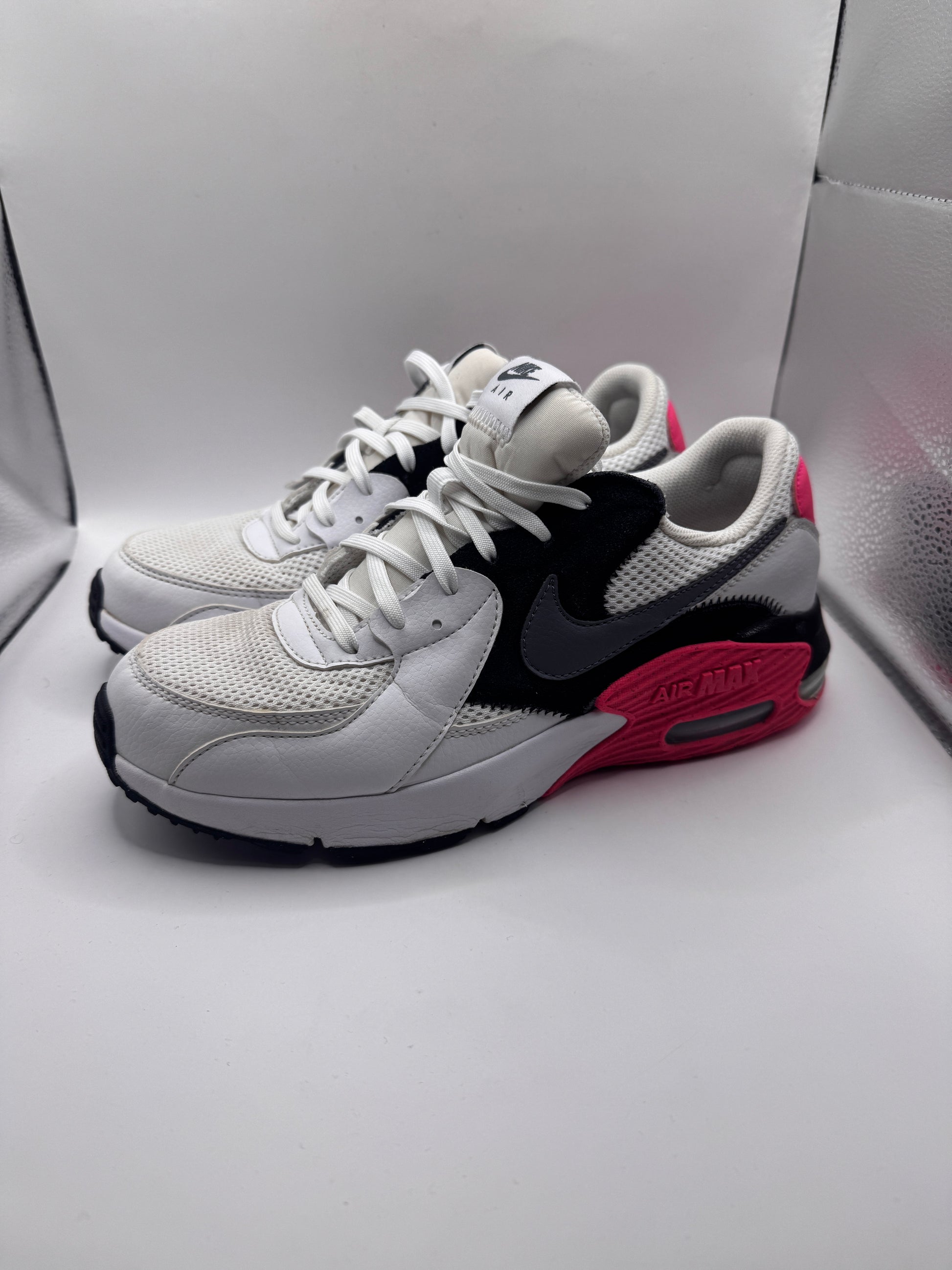 Classic Air Max comfort with a bold pop of pink. These Nike women’s sneakers feature a clean white base with black accents and bright pink Air Max detailing for a sporty, street-ready look. Easy to style with leggings, denim, or athleisure sets—and built for everyday comfort with that signature Air cushioning. Used, good condition.