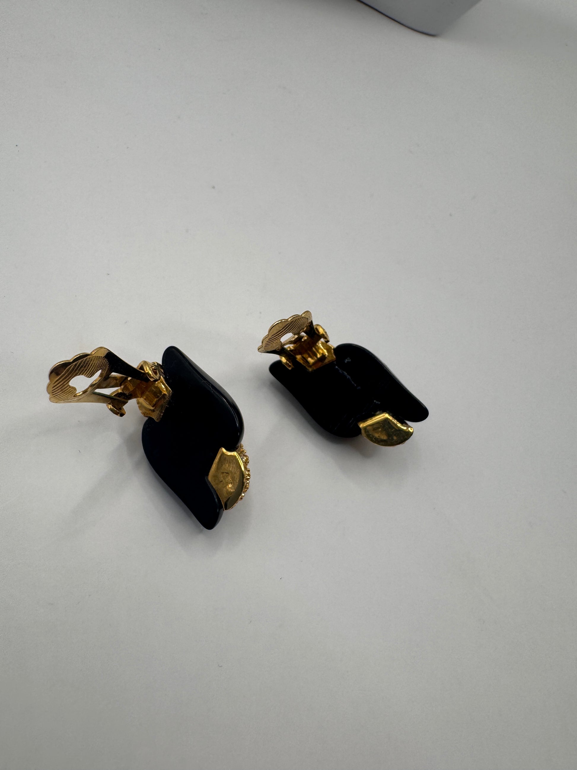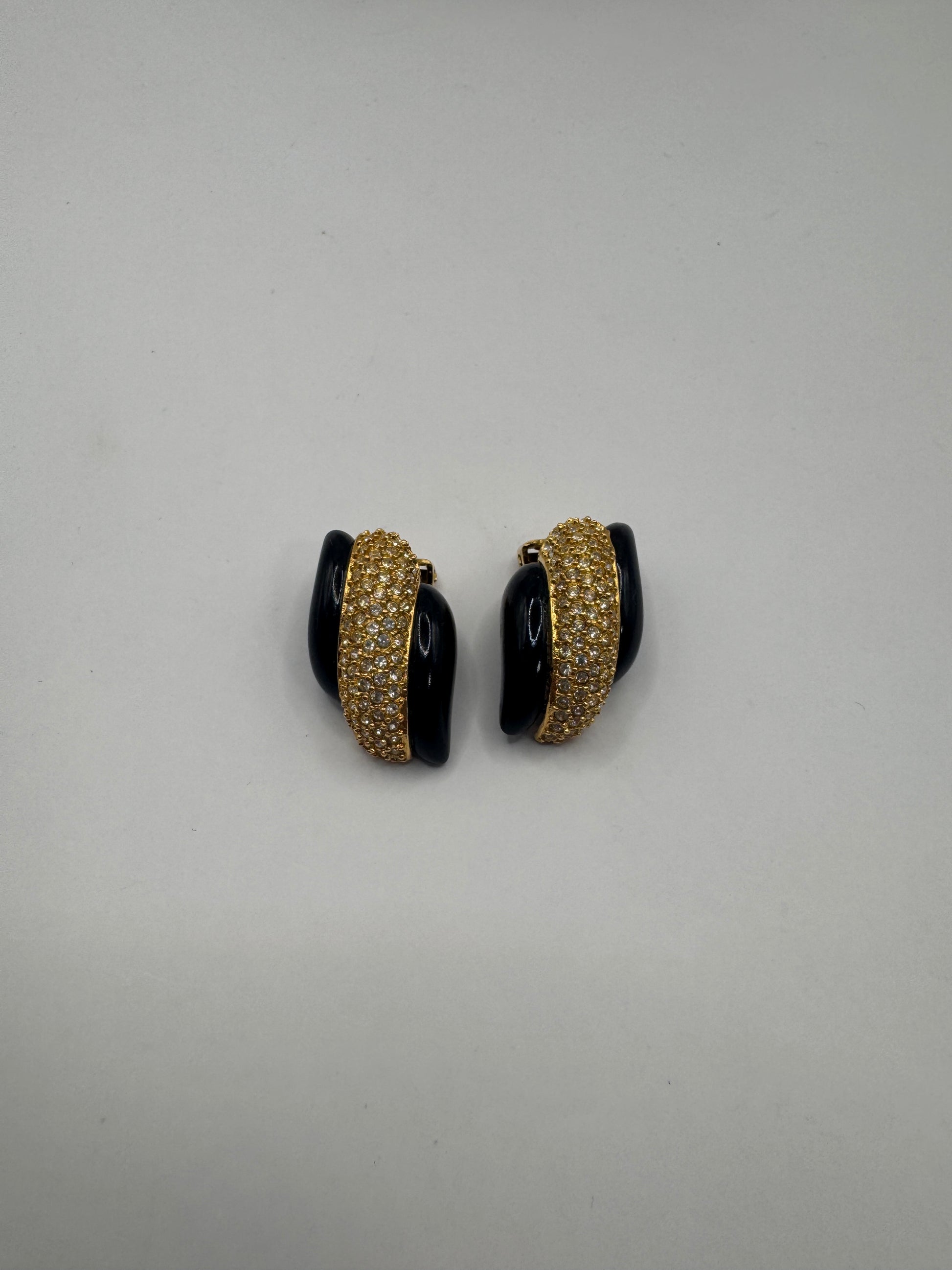 Authentic Vintage Dior Crystal & Black Enamel Clip-On Earrings – 1980s