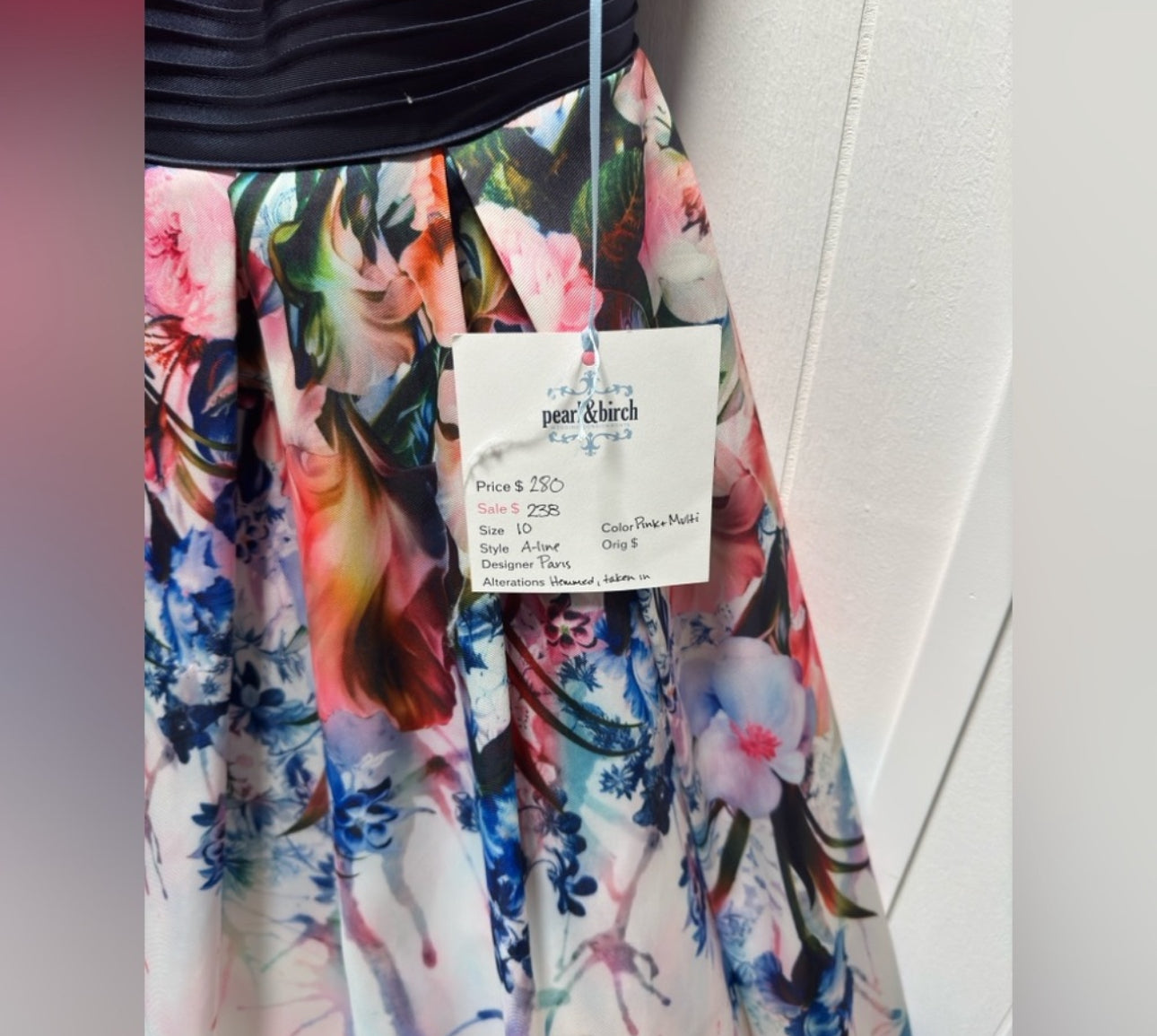 Step into elegance with this Paris Mon Cheri Pink Floral Strapless Gown, a stunning Size 14 dress perfect for prom, bridesmaids, weddings, and formal events. Designed with a romantic pink floral print, this gown features a flattering strapless bodice with a bust width of 18.5” and a waist width of 15”, offering a beautifully tailored fit.