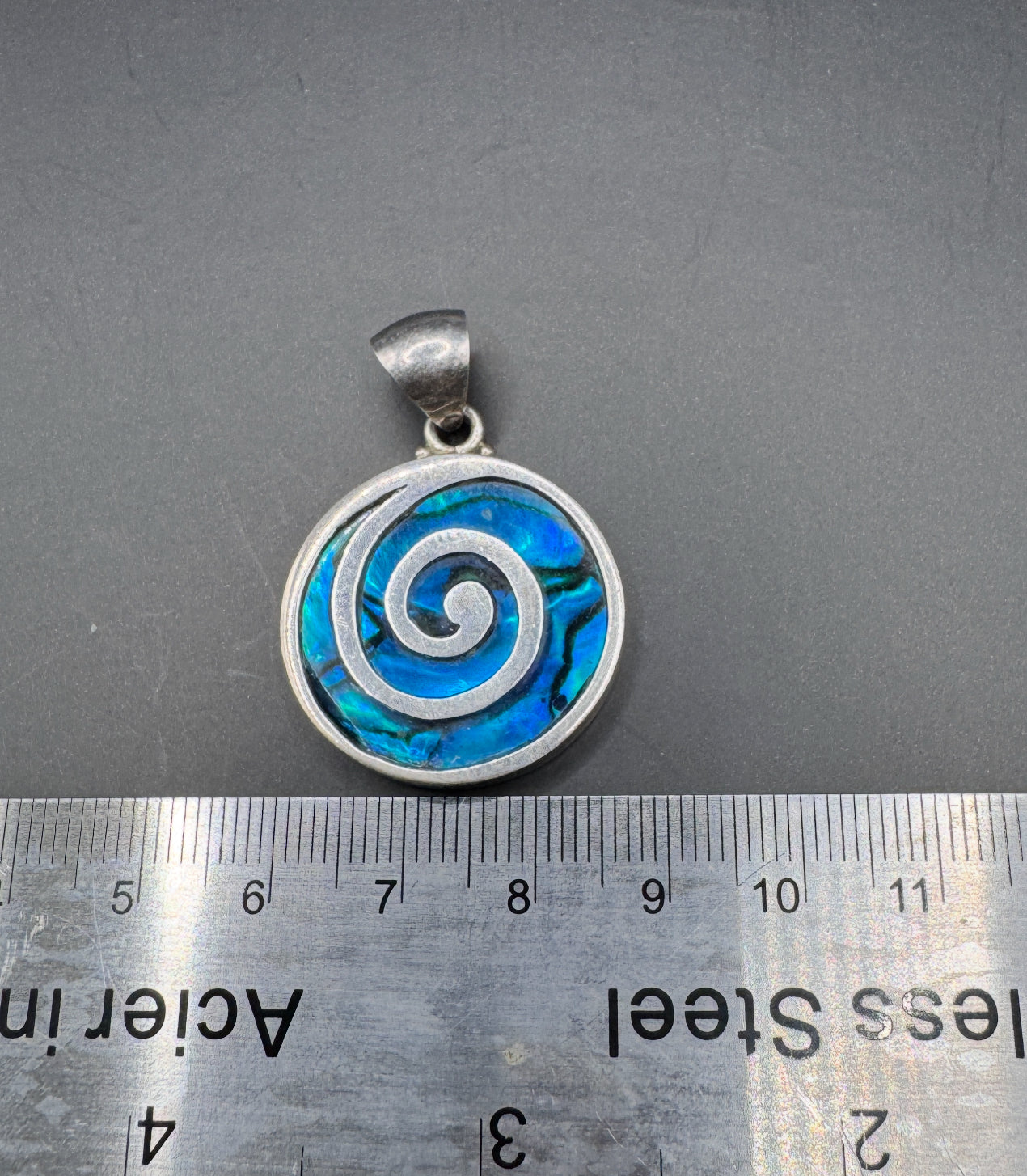 Sterling Silver 925 Fire Rainbow Blue Opal Greek Spiral Pendant