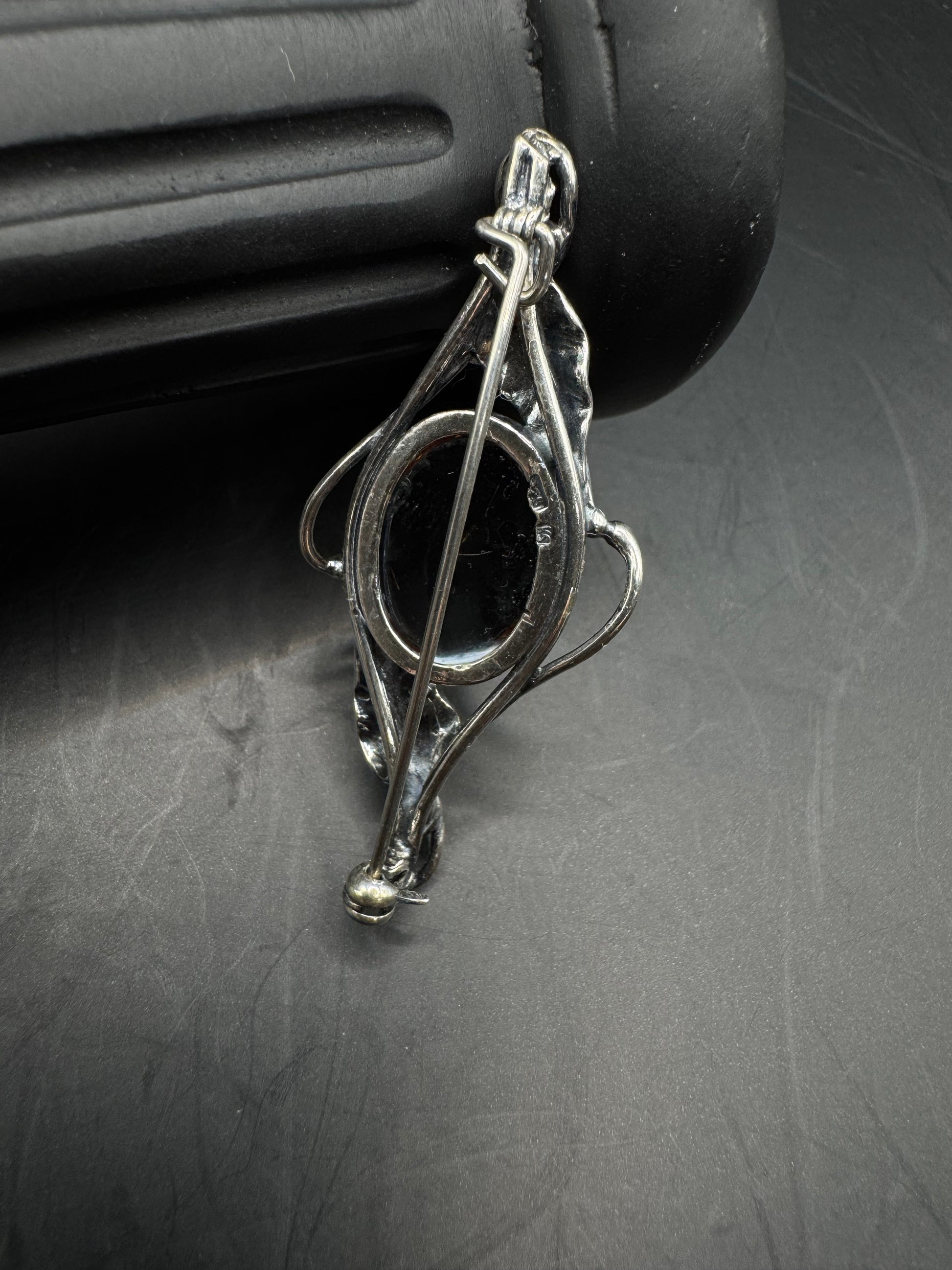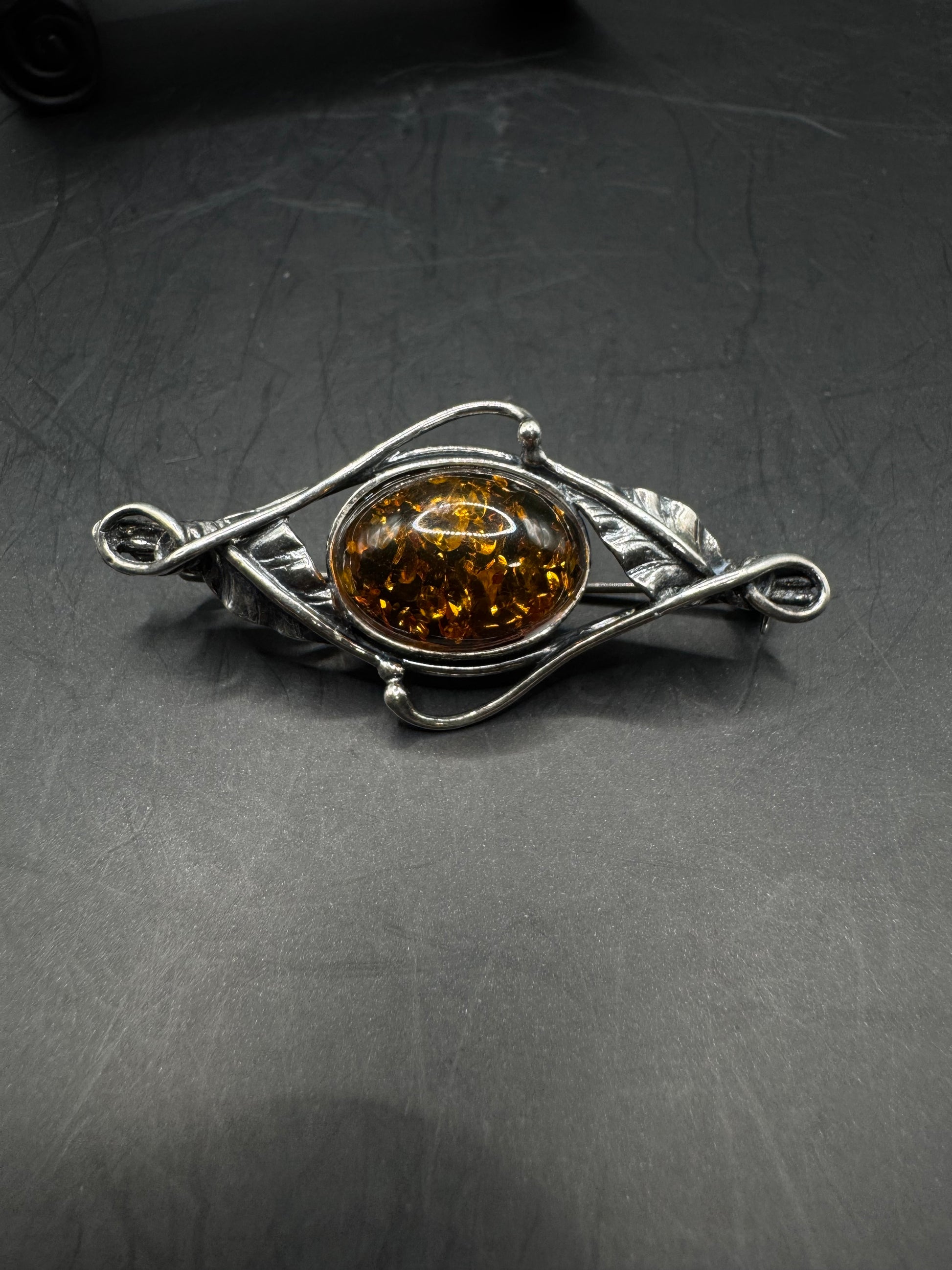 Sterling Silver & Amber Handmade Vintage Brooch – 2”