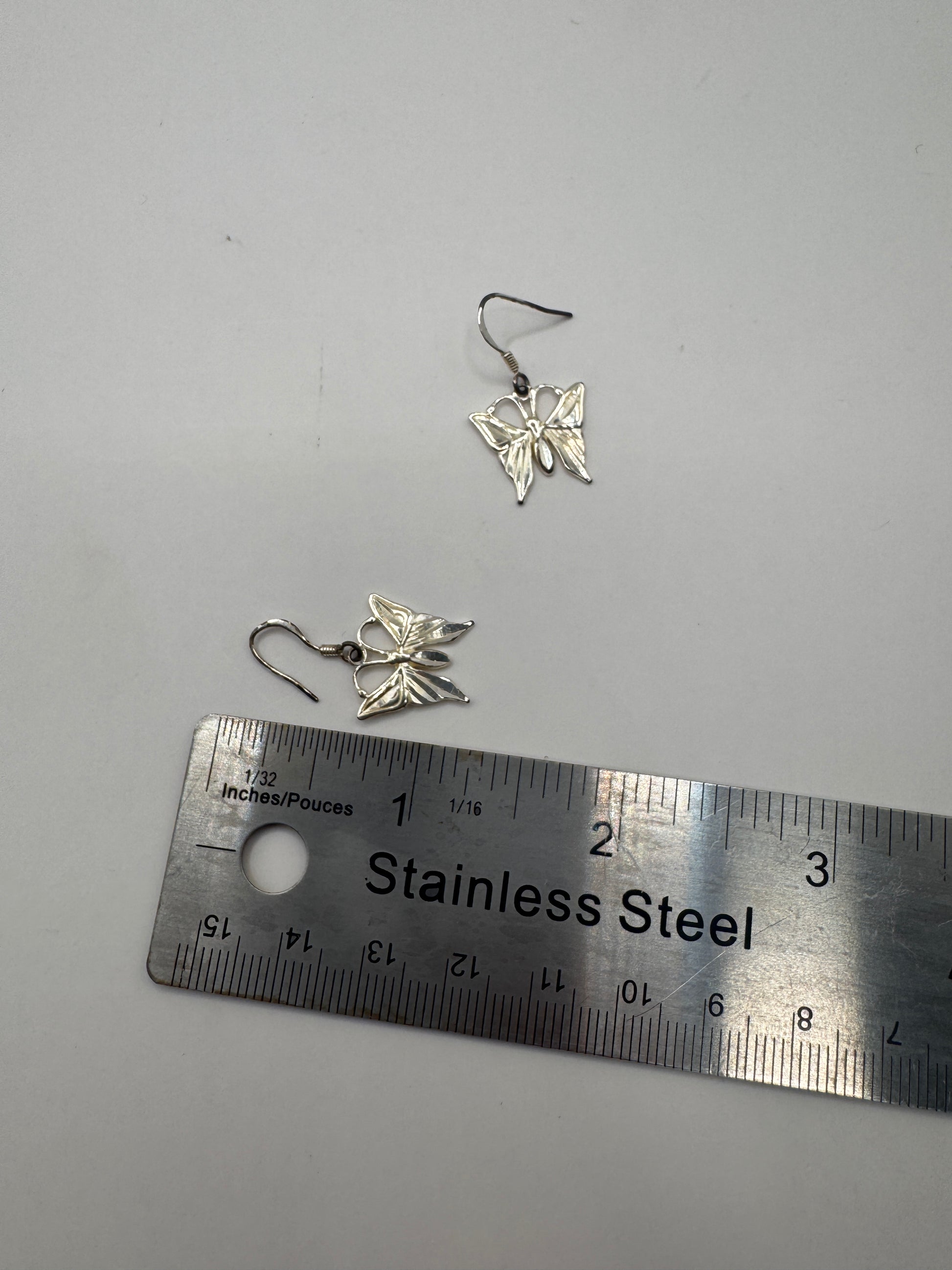Embrace natural elegance with these sterling silver butterfly earrings, featuring delicate cutout wings with intricate detailing. Lightweight and graceful, these earrings are perfect for everyday wear or adding a touch of whimsy to any outfit. A beautiful choice for nature lovers, collectors, or anyone seeking timeless, feminine accessories.