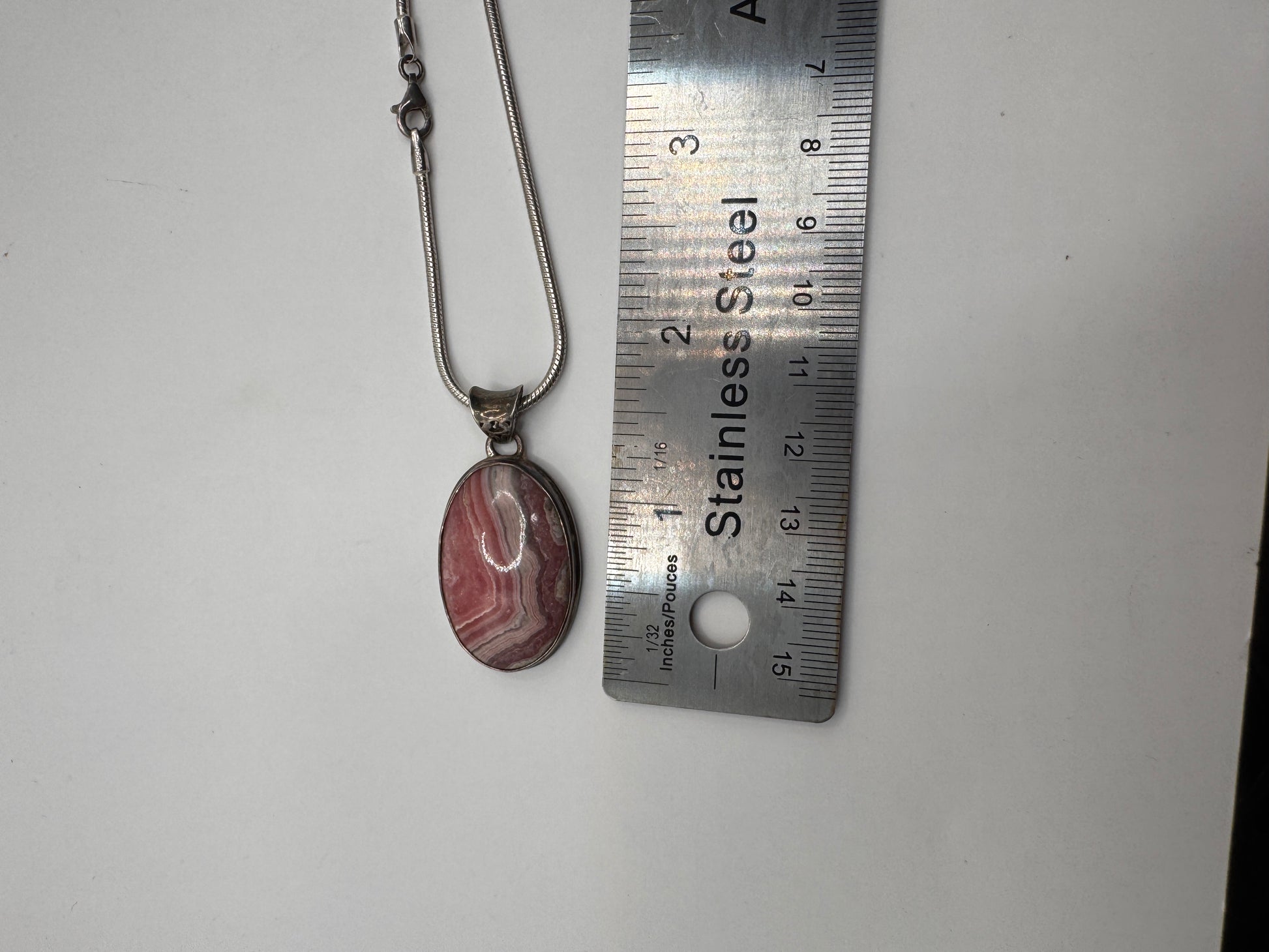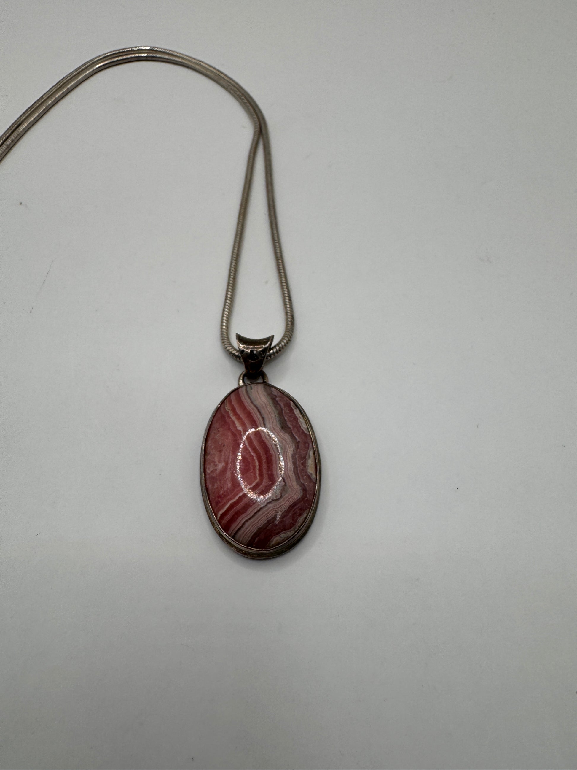 Sterling Silver Rhodochrosite Pendant Necklace – Natural Banded Pink Stone, 925