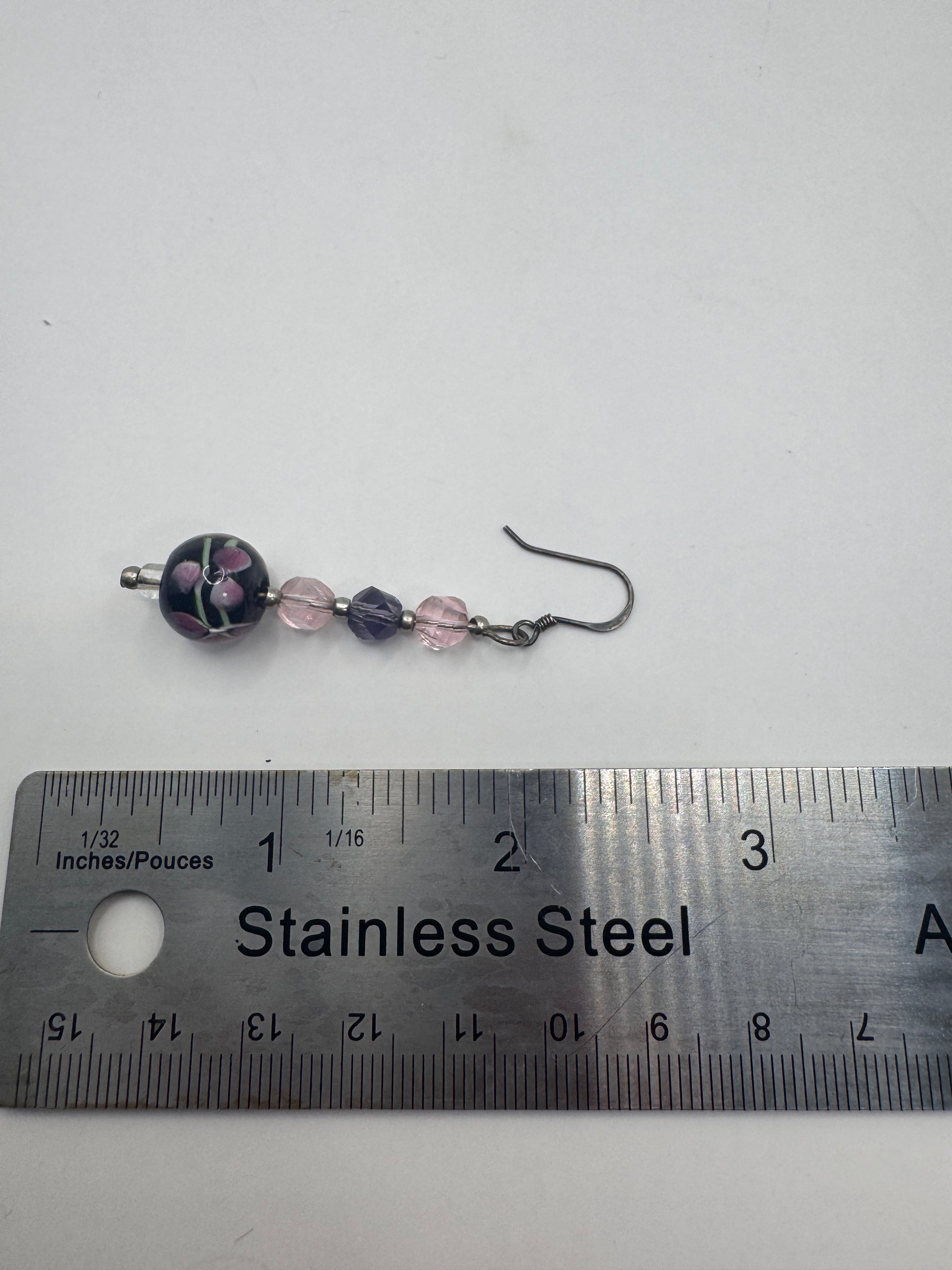 These vintage 925 sterling silver Murano glass earrings add a soft, romantic touch to any outfit. Each dangle features a hand-crafted black Murano glass bead with purple floral detail, paired with faceted purple and lilac beads for extra sparkle and movement.