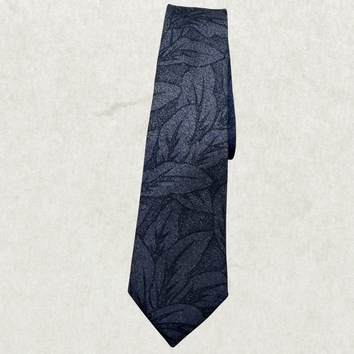 Vintage Biaggiotti Silk Tie – 100% Silk, Tonal Navy Leaf Pattern