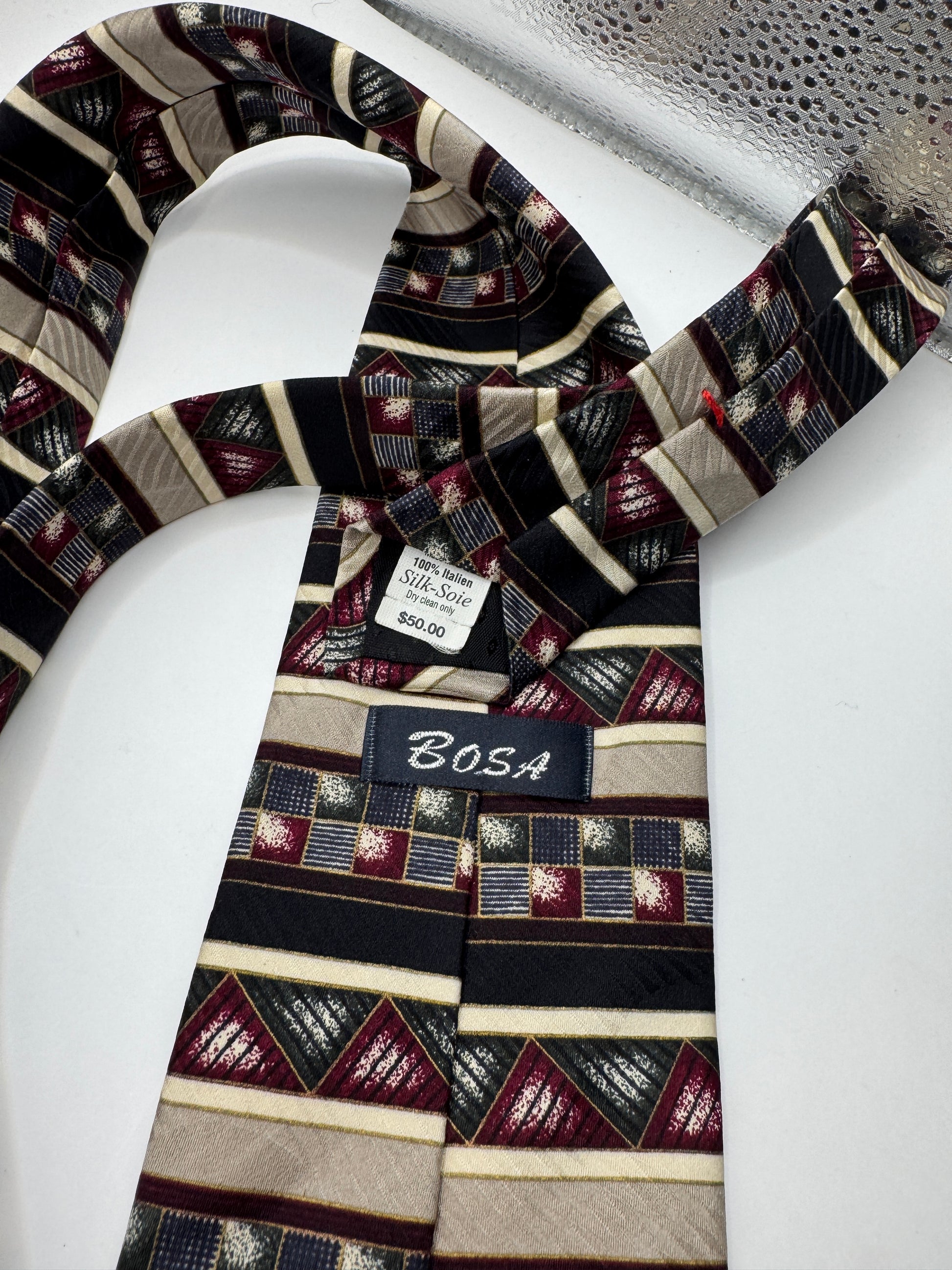 Vintage Bosa Silk Tie – 100% Silk, Geometric Stripe Pattern