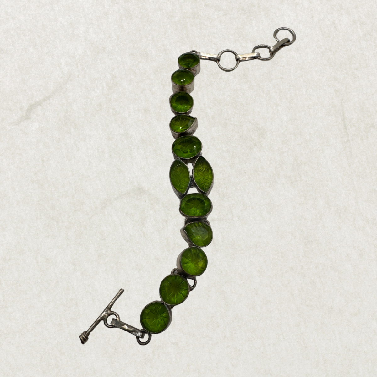 Vintage Custom Sterling Silver Bracelet with Green Glass Stones – 7.5"