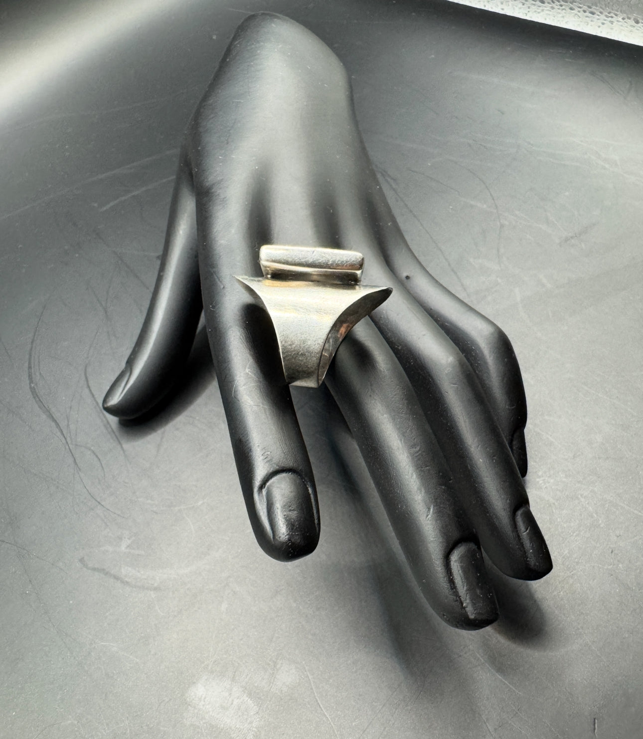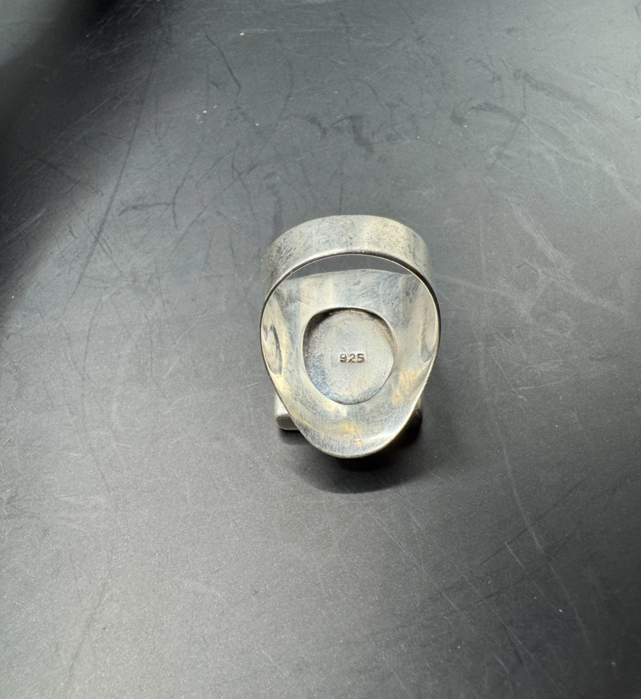 The smooth signet-style face highlights the contrast between the creamy glow of mother of pearl and the vibrant flashes of abalone, making each ring completely unique. Its comfortable size 7.5 fit makes it perfect for everyday wear or as a statement piece for collectors of vintage Mexican jewelry, sterling silver rings, and southwest-inspired designs.