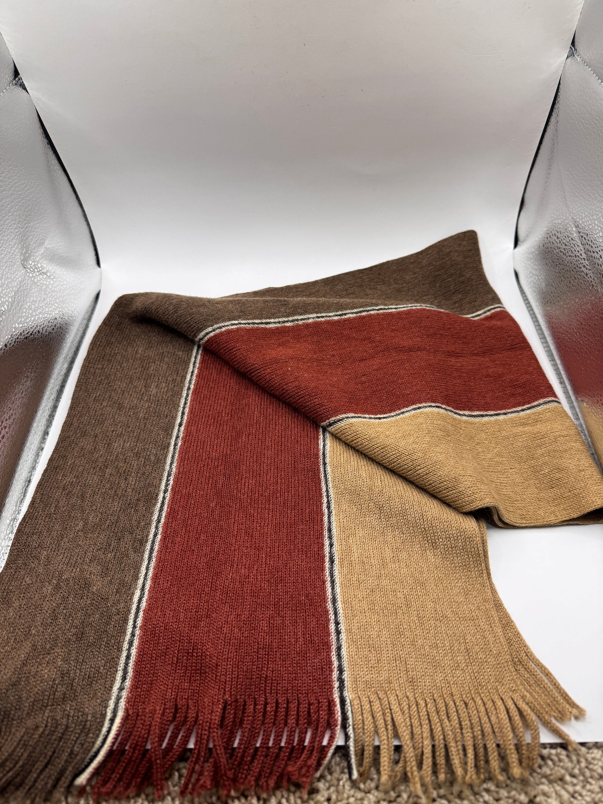 Vintage Paco Rabanne 100% Wool Scarf – 52” x 12”, Striped, Fringe Ends