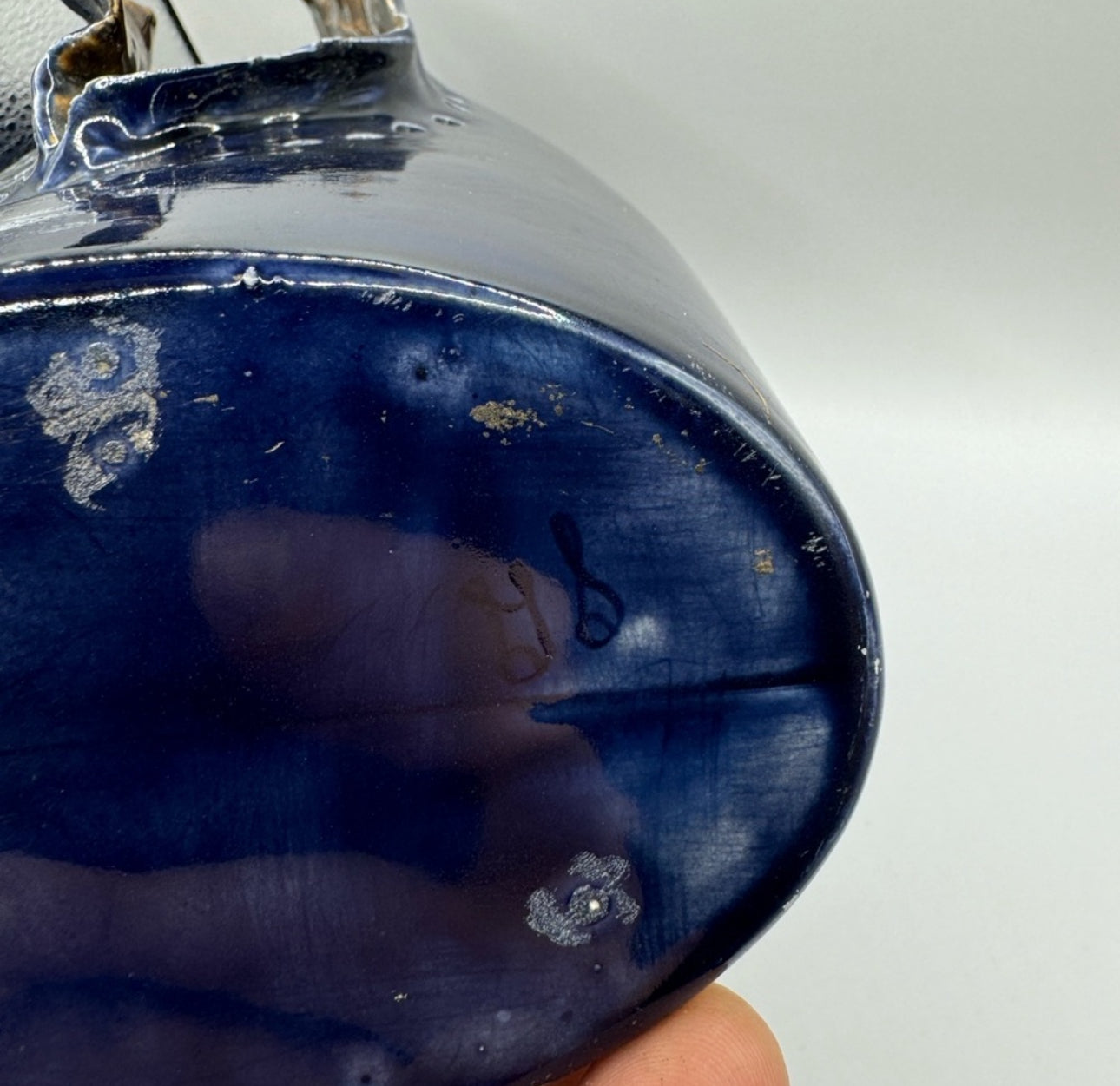 Vintage Porcelain Art Vase, Signed IS – Sculptural Navy Blue, c.1970, 11.5” x 7” x 7.5”