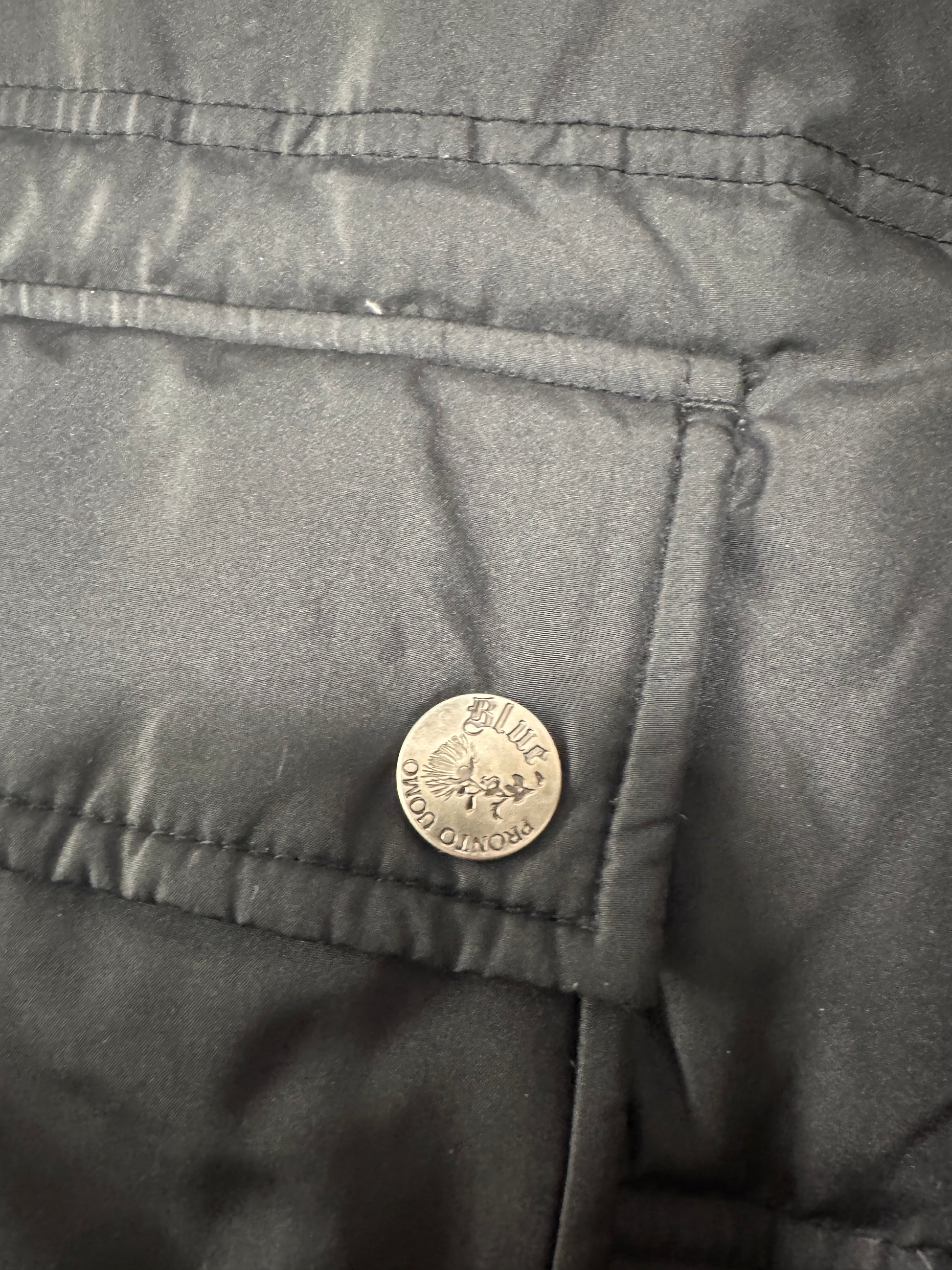 Vintage Pronto Uomo Men’s Puffer Vest – Size S, Navy, Fleece Lined, Snap Pockets