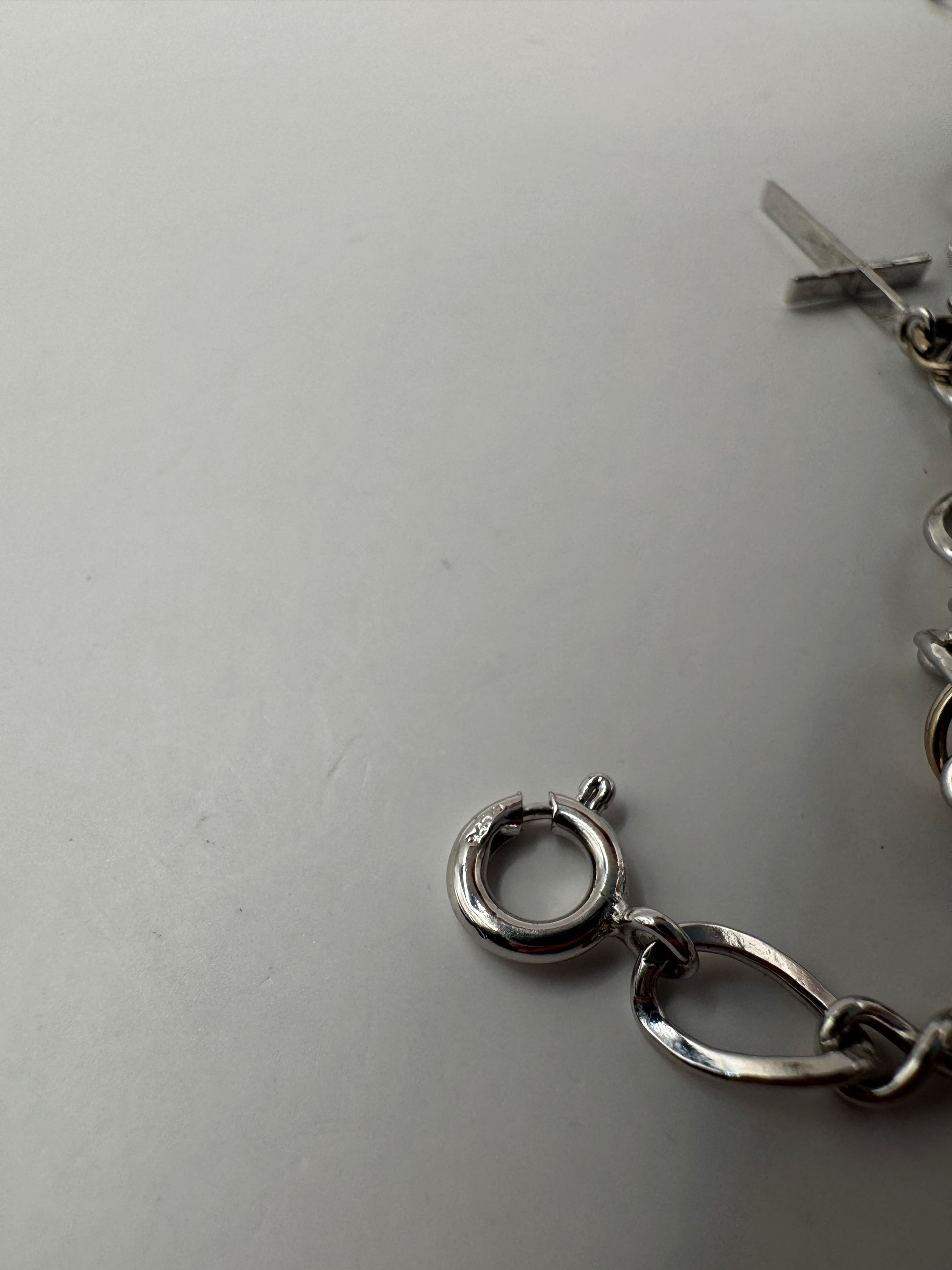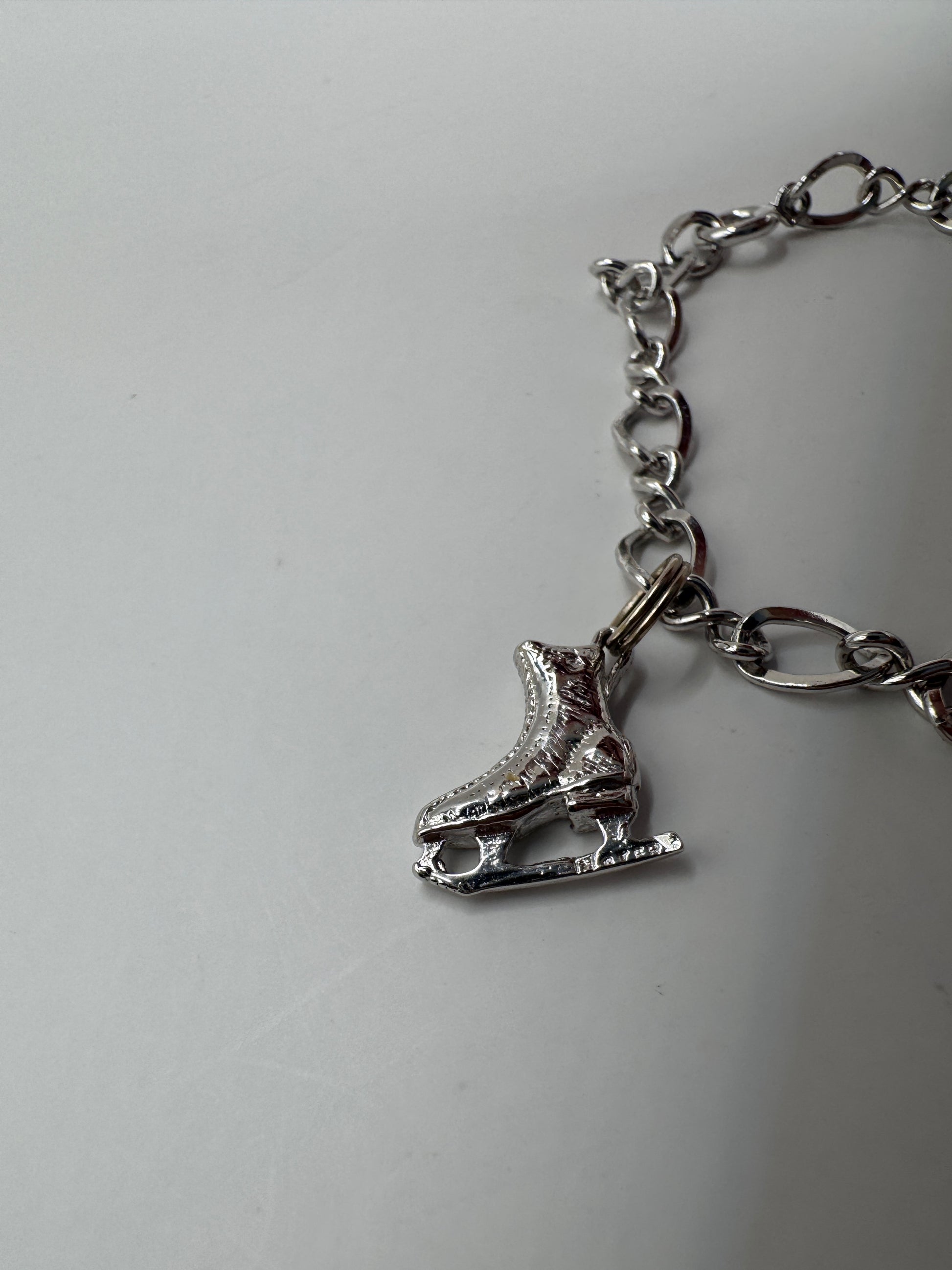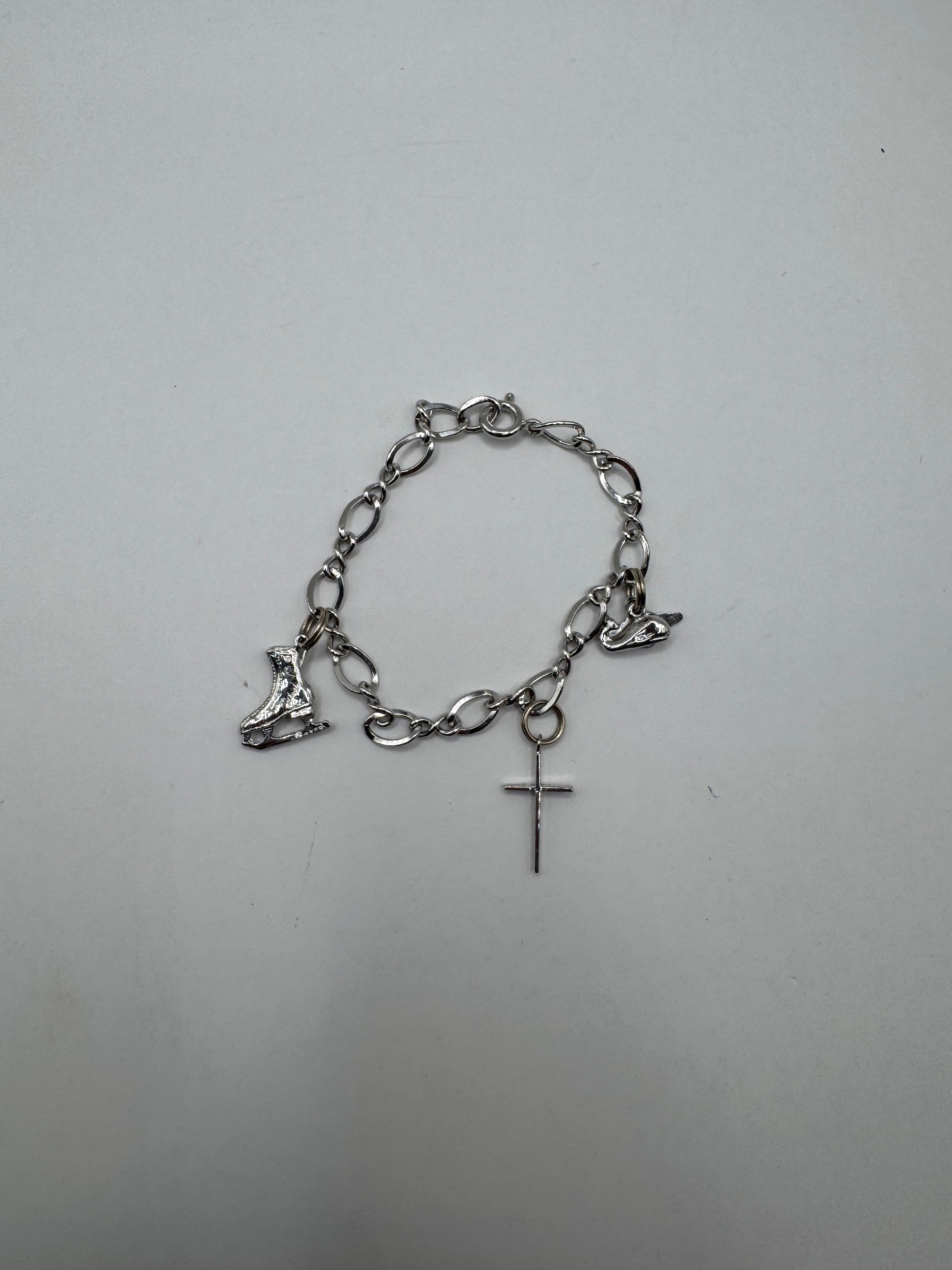 Vintage Sterling Silver Charm Bracelet – Ice Skate & Cross Charms