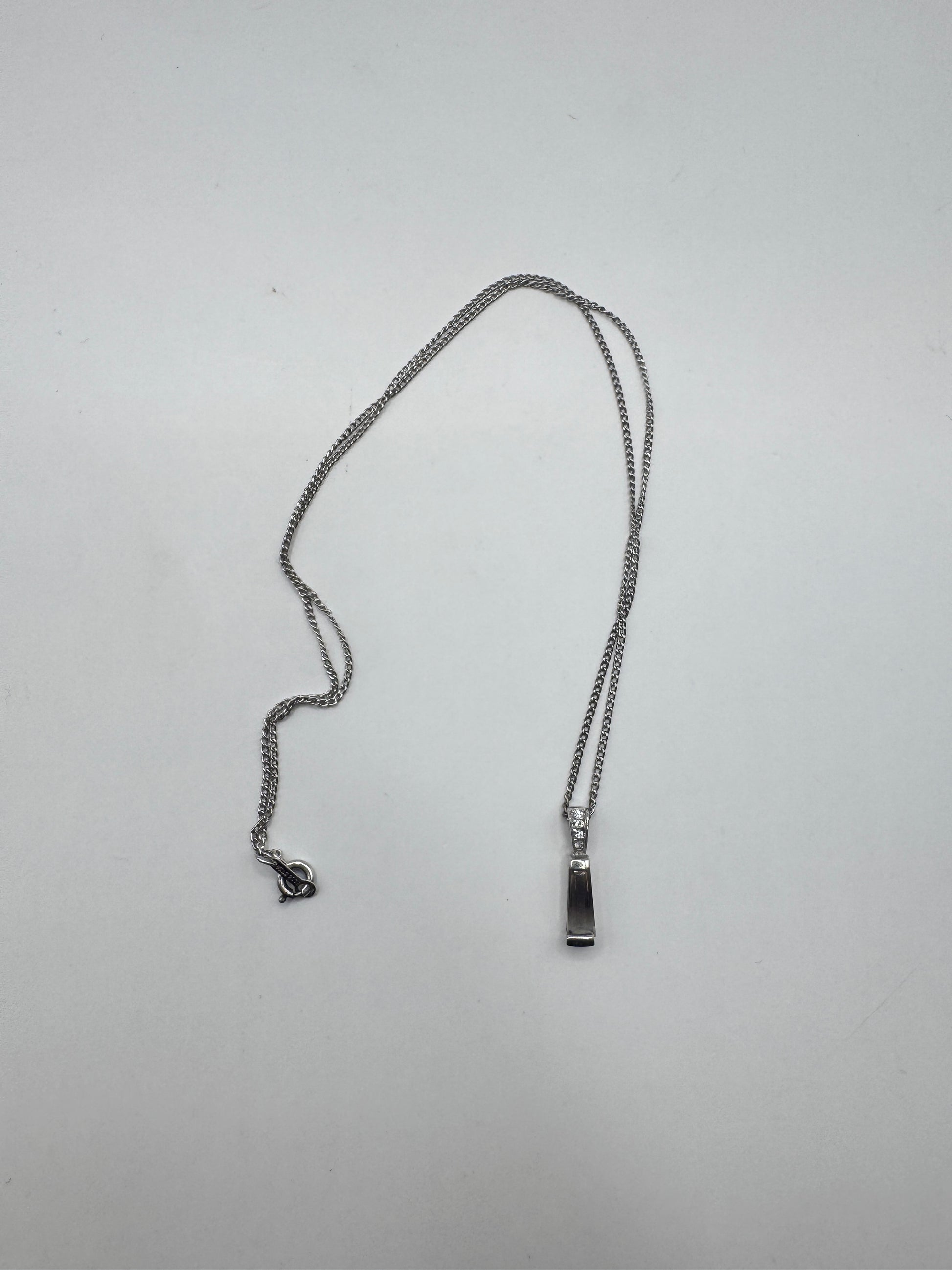 Add a touch of timeless sparkle to your collection with this vintage sterling silver necklace, featuring a sleek bar pendant accented with shimmering crystals. Crafted from solid 925 silver, this piece is perfect for layering or wearing solo—ideal for both everyday elegance and special occasions.