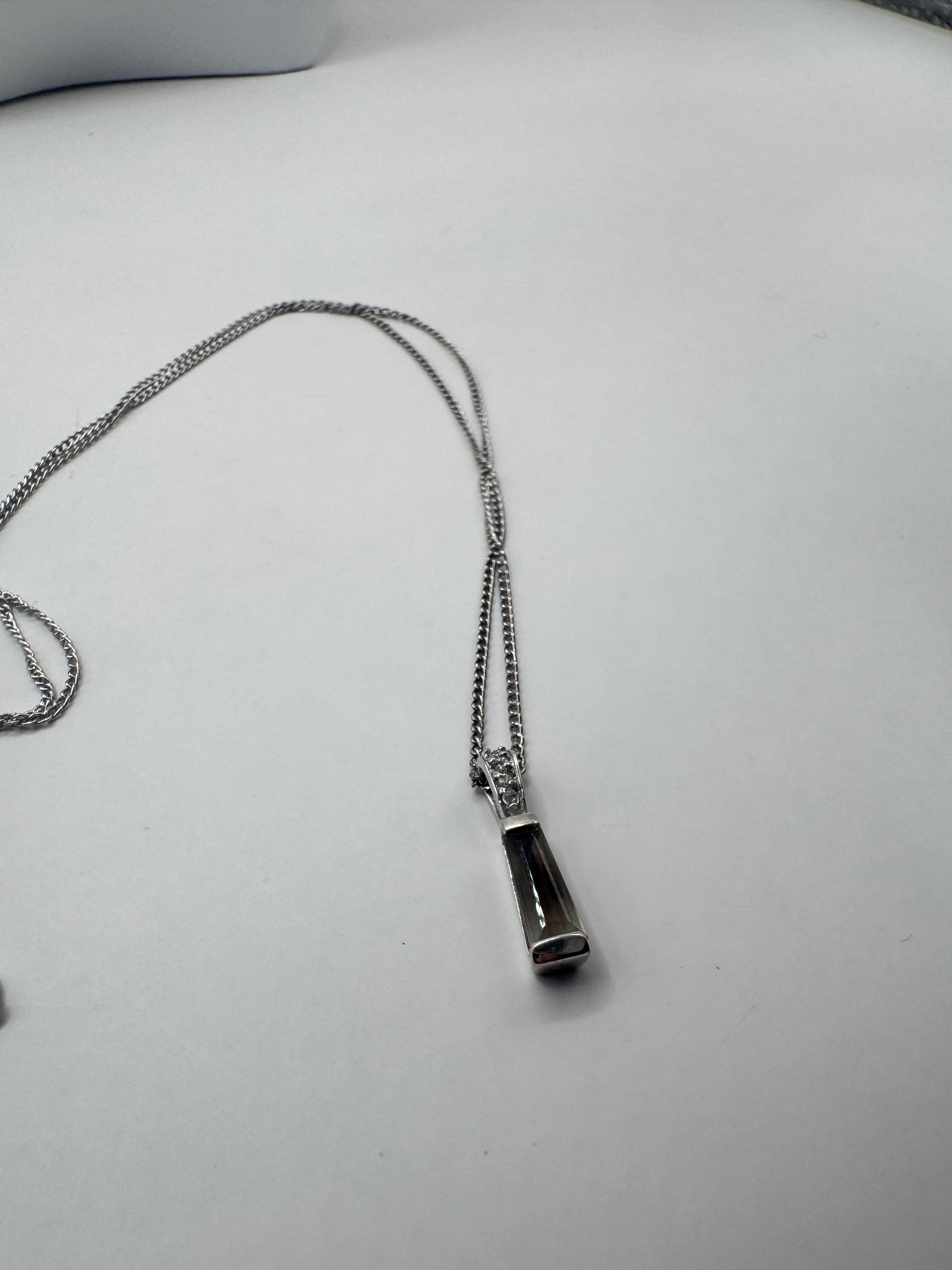 Vintage Sterling Silver Necklace with Crystal Pendant – 925