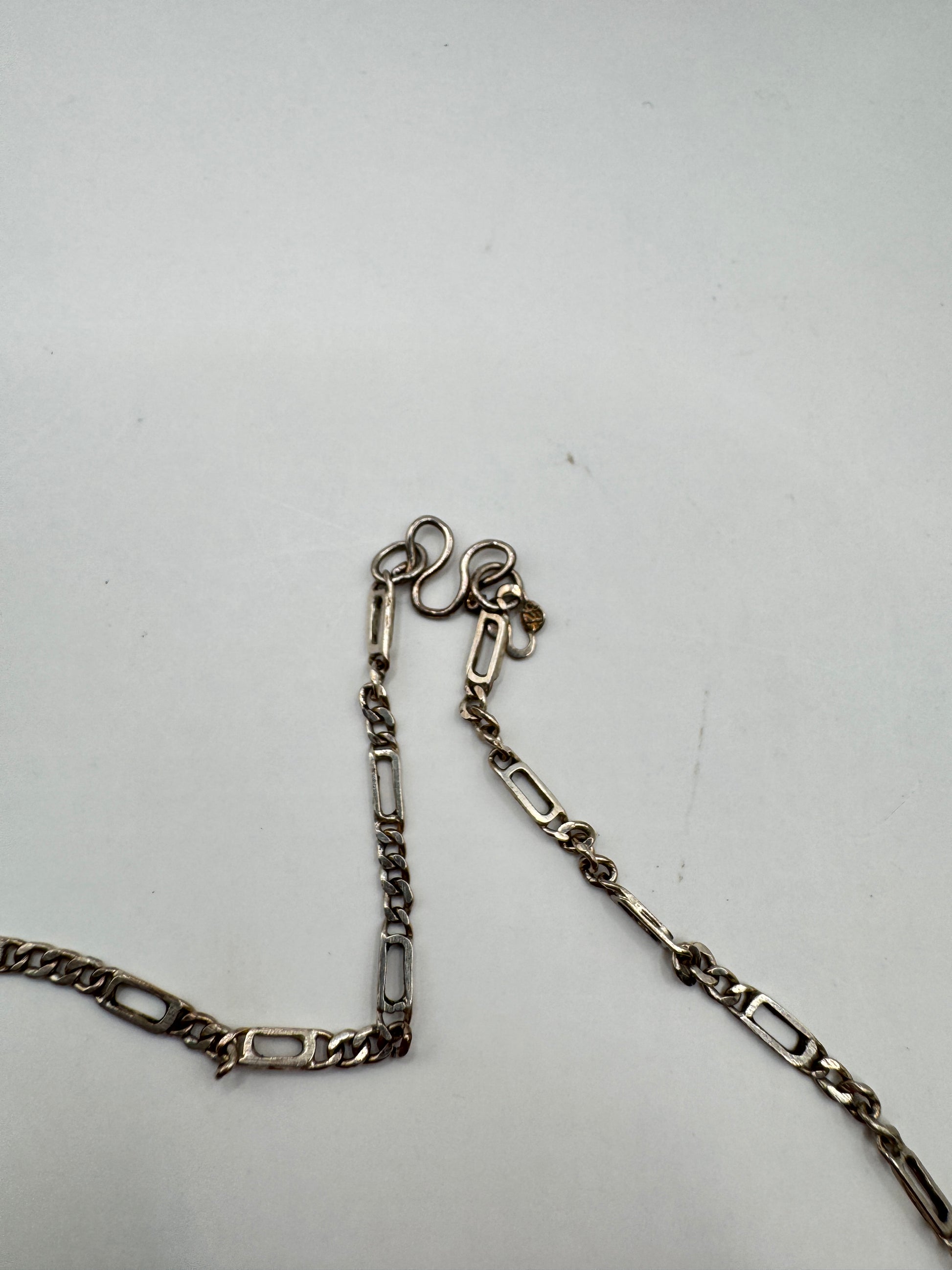 Embrace natural beauty with this vintage sterling silver shell necklace, featuring a smooth, organic shell pendant on a classic figaro chain. The sleek design and timeless appeal make this piece perfect for layering or wearing solo—ideal for beach lovers, minimalist style fans, or anyone seeking understated elegance.