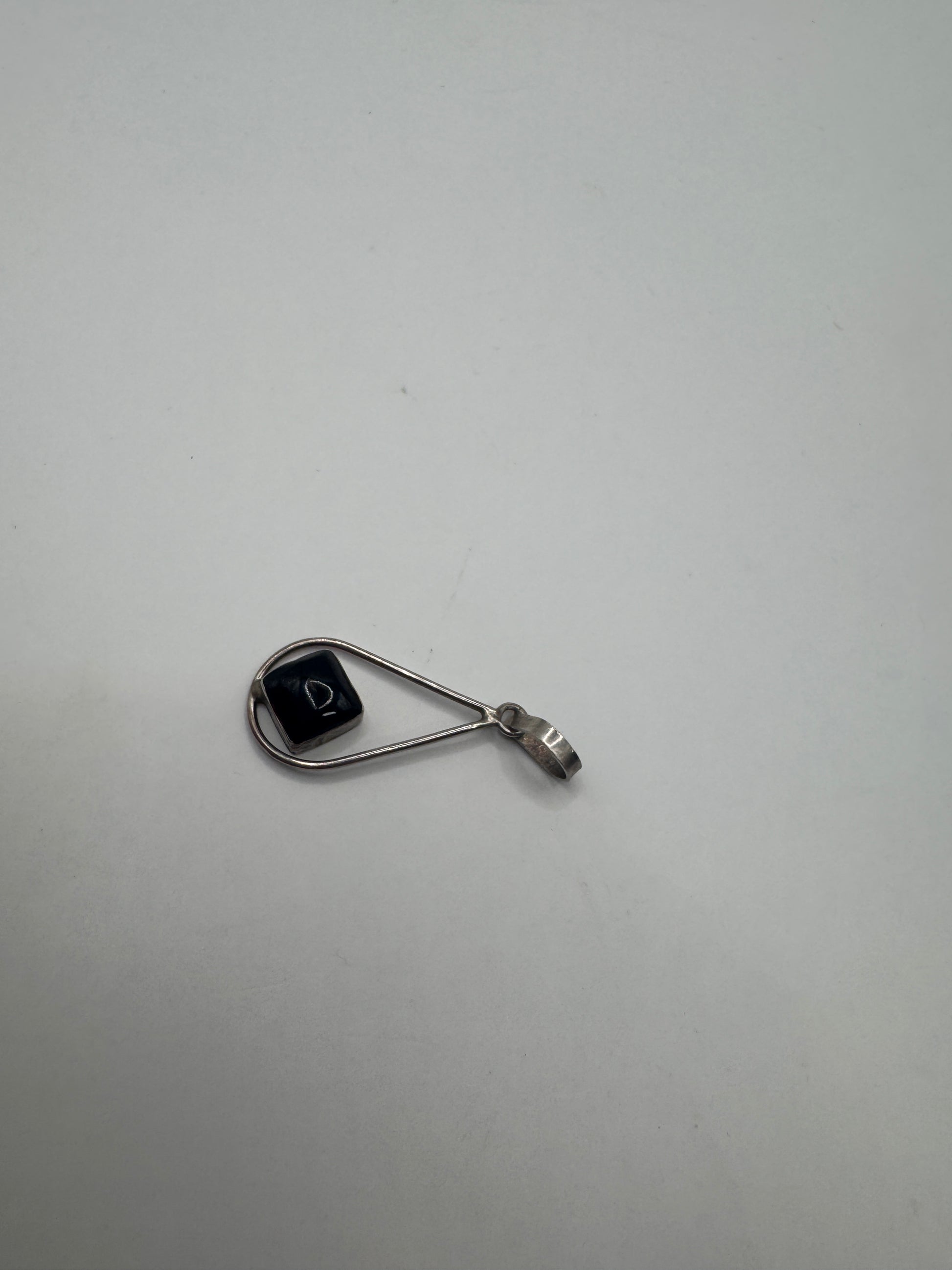 Vintage Sterling Silver Teardrop Pendant with Black Onyx