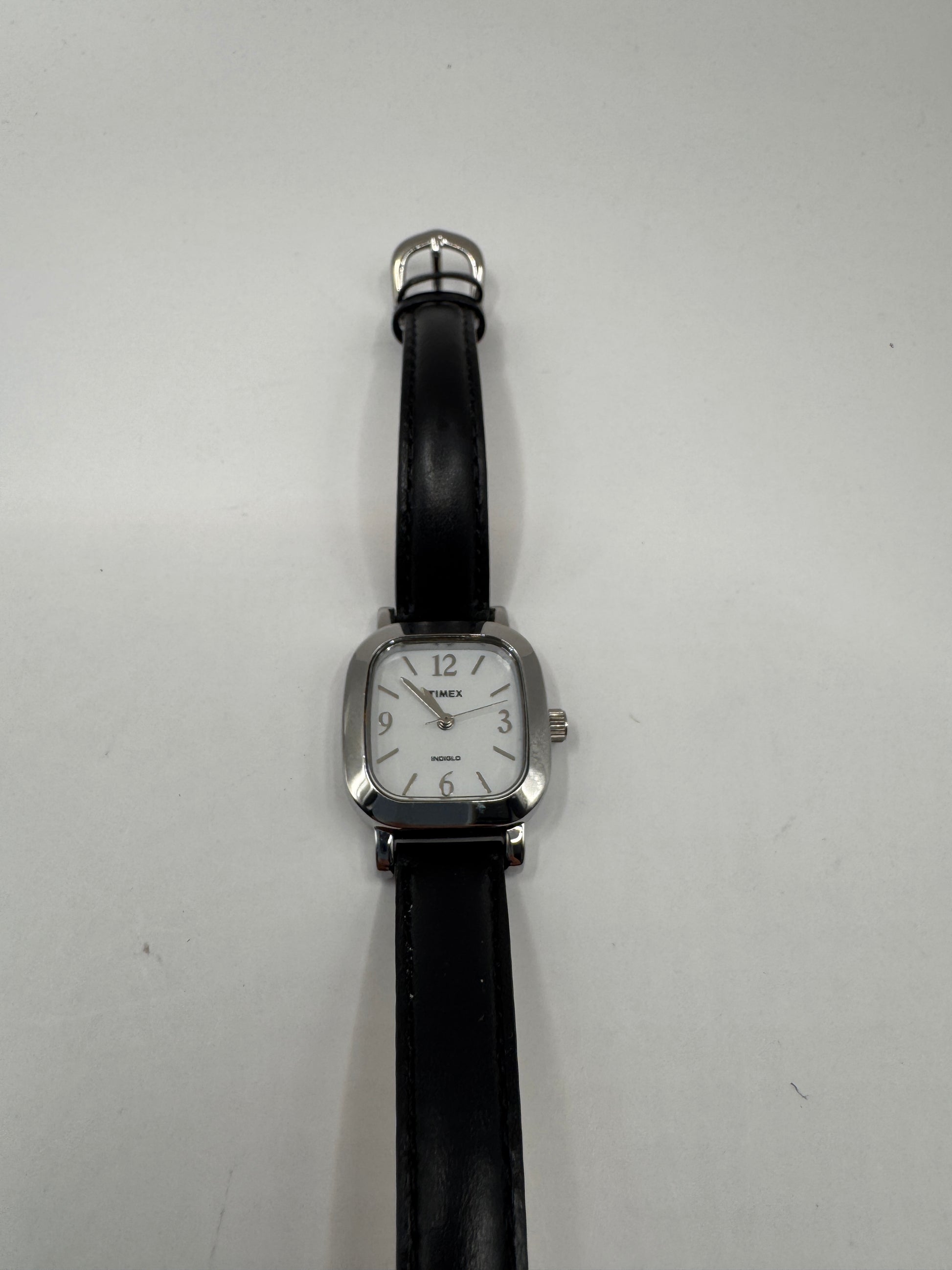 Vintage Timex Indiglo Watch – Classic Silver Case, Black Leather Strap